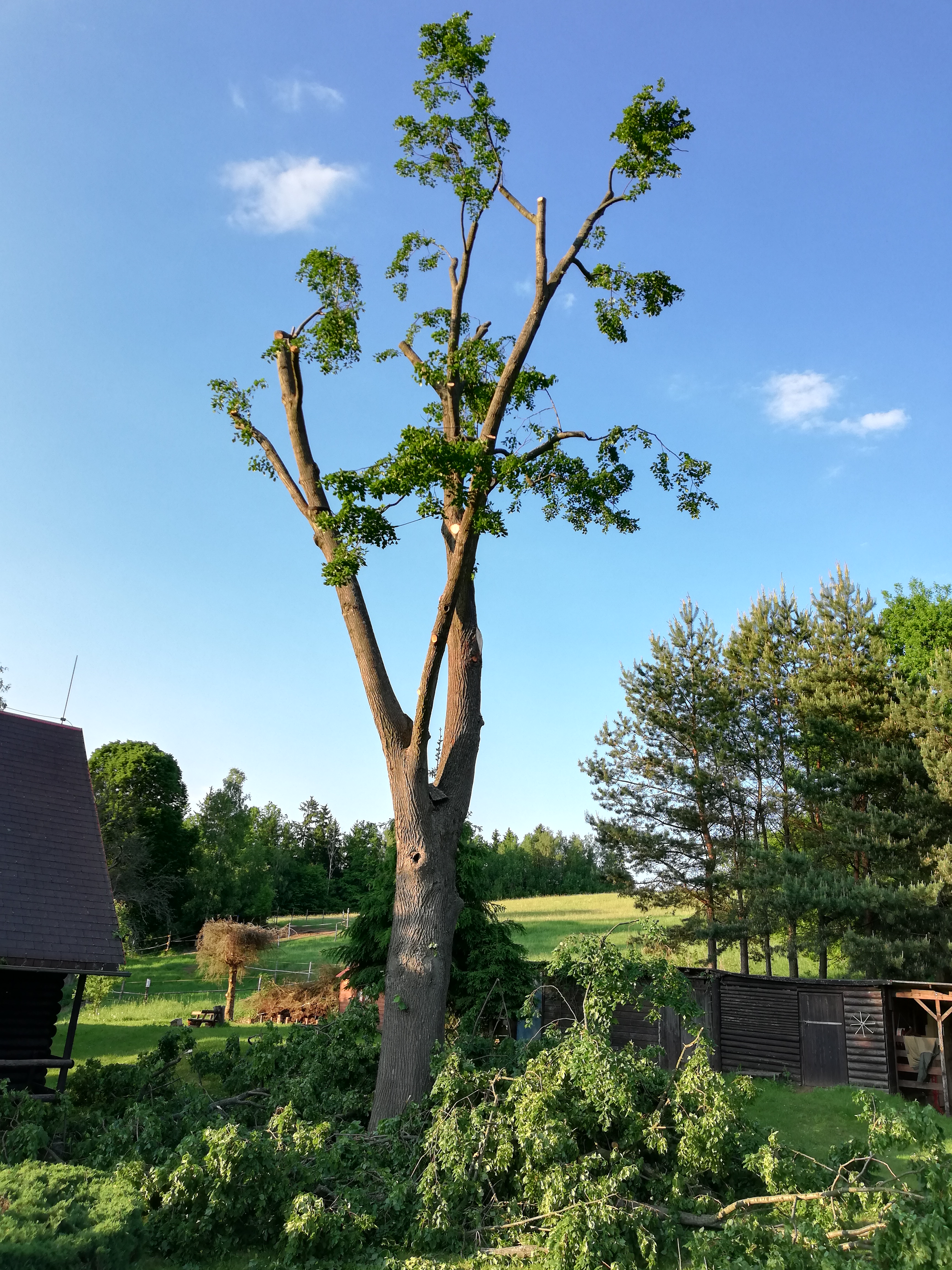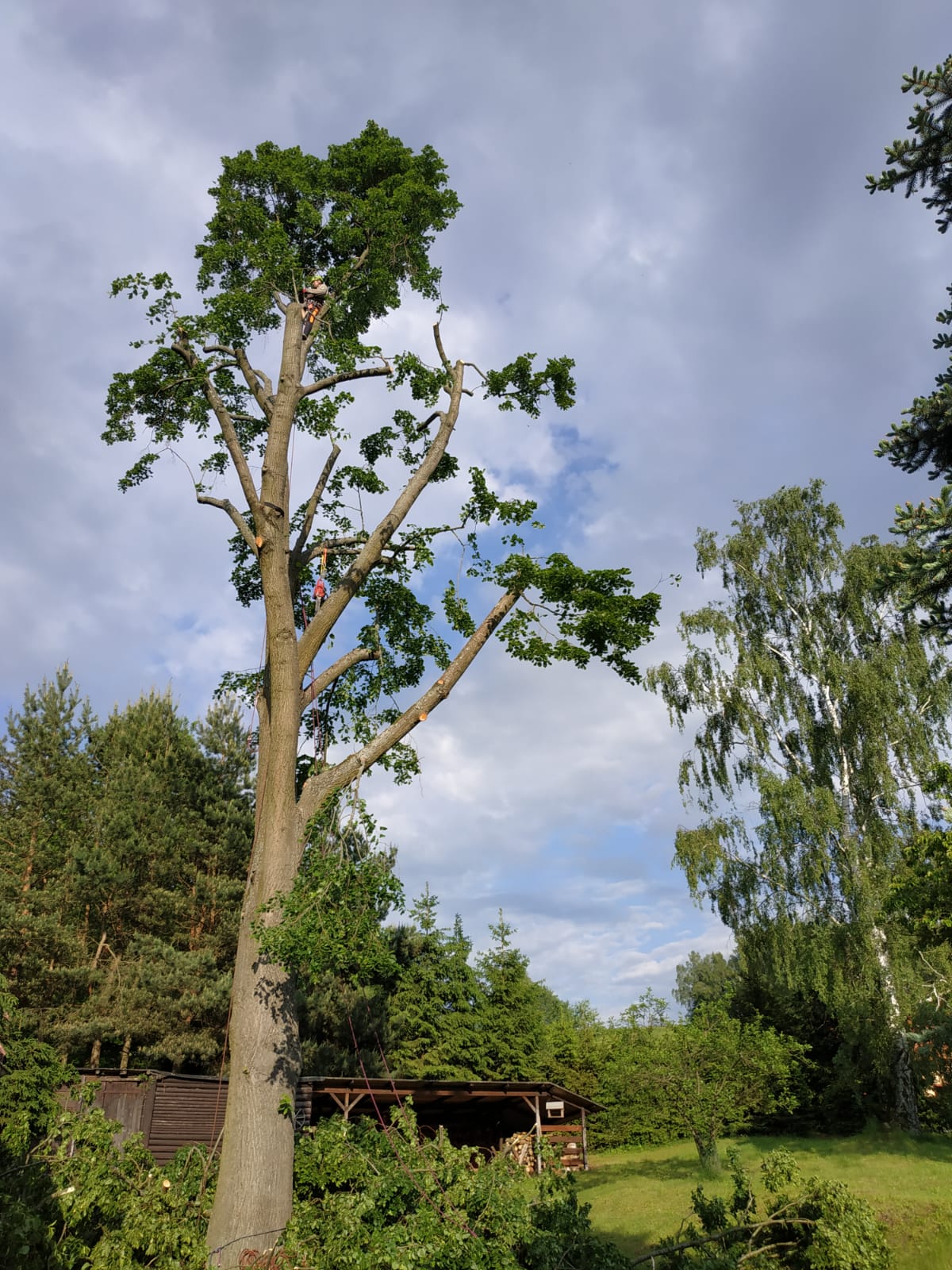Provádíme rizikové kácení v zastavěných oblastech, postupné kácení či ořez nebezpečných stromů (přestárlých, proschlých, nahnilých, nakloněných nebo jinak poškozených stromů, které ohrožují bezpečnost). Tyto úkony provádíme pomocí horolezecké/stromolezecké techniky. Dále provádíme i běžné kácení a těžbu dřeva.